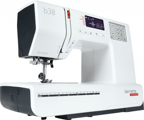 Die bernette 38 ist das Topmodell der bernette Serie. Diese Computer-Nähmaschine bietet einen grossen Funktionsumfang und ist günstig im Preis – da bleiben keine Wünsche offen. Sie verfügt über 394 verschiedene Stiche, darunter auch Stretchstiche für dehnbare Stoffe. Damit kannst Du zum Beispiel tolle T-Shirts aus Jersey zaubern. Ausserdem hat die bernette 38 acht verschiedene, einstufige Knopflöcher und drei Alphabete. Zudem besitzt sie einen Speicher, mit dem Du verschiedene Kombinationen von Mustern speichern kannst und ihn nach einer Nähpause sofort griffbereit hast. Möchtest Du gerne die Geschwindigkeit beim Nähen anpassen können? Kein Problem! Die bernette 38 hat einen praktischen Geschwindigkeitsregler, der per Display eingestellt werden kann. Als Top-Modell überzeugt diese Nähmaschine ausserdem mit einem hellen LED-Nählicht, einem Einfädler und einem automatischen sowie manuellen Fadenabschneider. Die bernette 38 kommt ausserdem mit acht verschiedenen Nähfüssen (Sohlen) und einem grossen Anschiebetisch im Standardpaket.